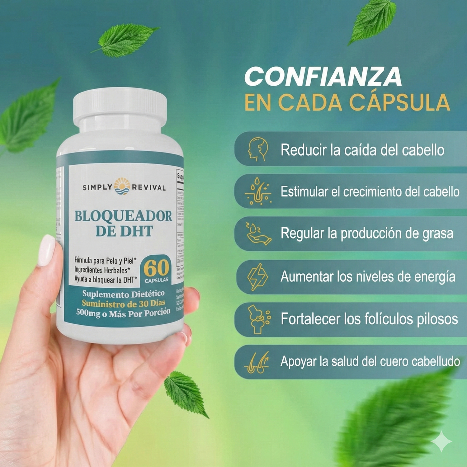 🌱 Fórmula 100% Natural: Solo ingredientes de calidad superior. Sin químicos ni efectos secundarios.