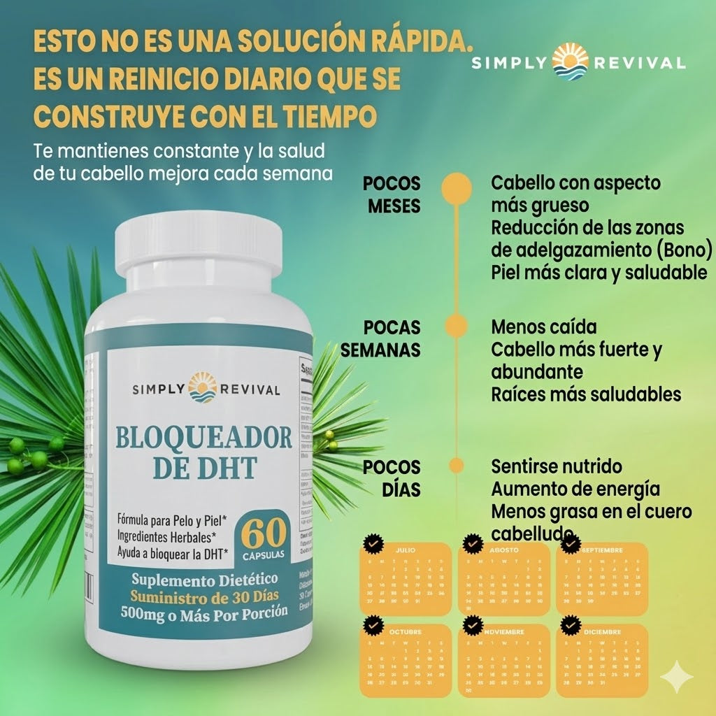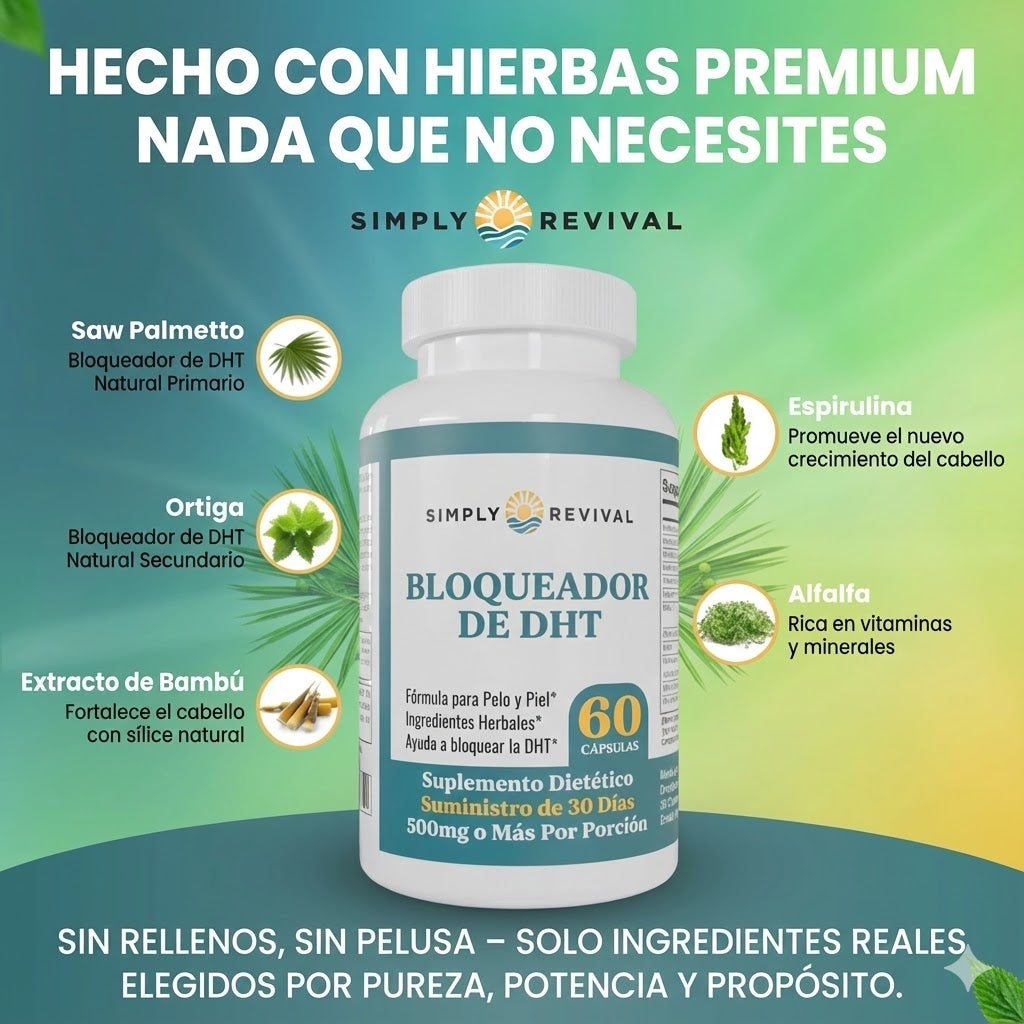 Detiene la Caída: Bloquea la producción de DHT, ayudando a prevenir la caída del cabello en el futuro.
